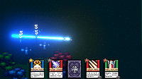Hi all ! Here is a sneak peak on the developement of the game. We can see a customized character building up to a spell. The cards on the bottom are the drawn cards from a deck you can build currently...